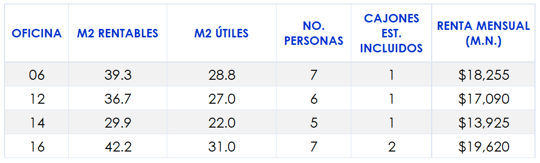 Requiero de 2 cajones de estacionamiento (sólo para oficinas de más de 30 M2)